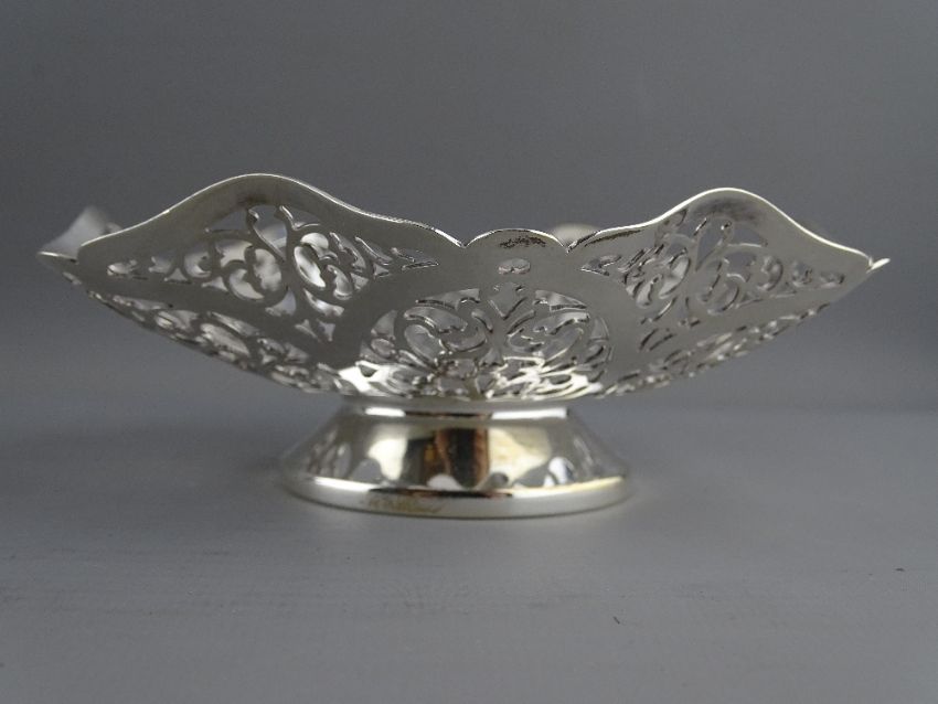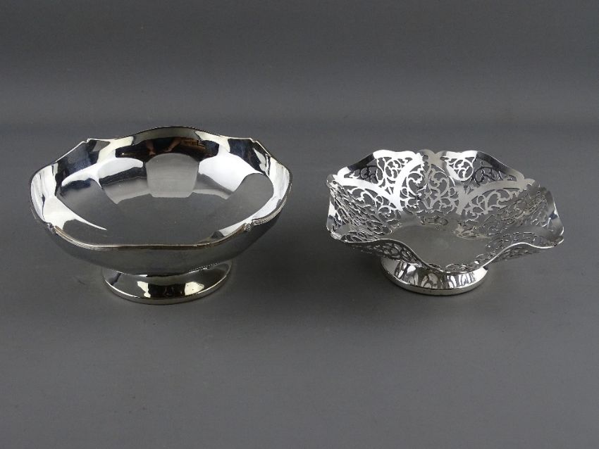 TWO SMALL SILVER BOWLS including a pierced example, 14.5 cms diameter, Sheffield 1955 and one other 6 cms high, Birmingham 1935, 10.2 troy ozs gross
