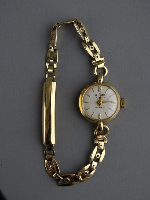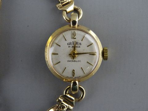 A LADY'S NINE CARAT GOLD CIRCULAR DIAL GRADUS WRISTWATCH with decorative nine carat gold floral link strap, 11.5 grms gross