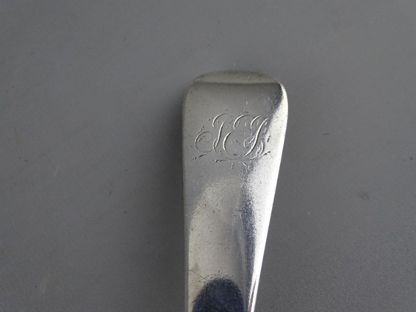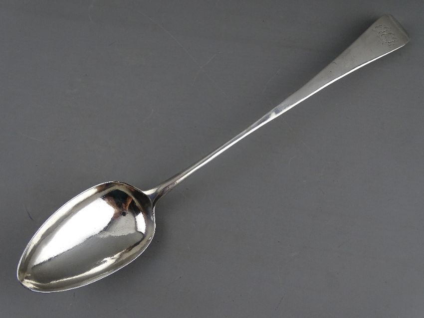 A GEORGE III SILVER BASTING SPOON, Peter, Anne & William Bateman, London 1802, approximately 105 grms (small central fracture), 32.5 cms long