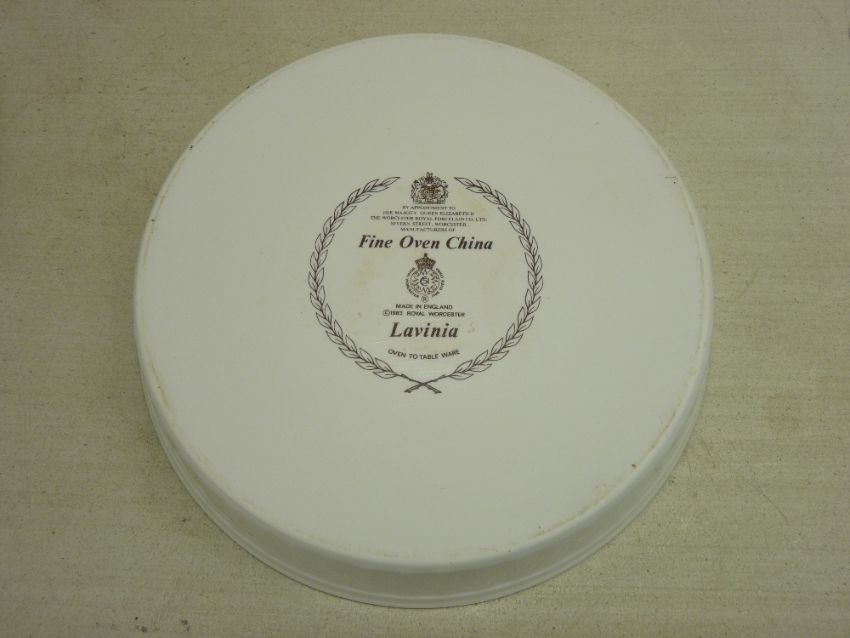 ONE HUNDRED & TWO PIECES OF ROYAL WORCESTER 'LAVINIA' TABLEWARE to include four serving dishes, six ramekins and one tureen and cover (all oven to table), one gravy boat stand, two nut dishes, a teapot, sugar bowl and milk jug, eight cups, nine saucers, six coffee cans, six saucers, two shallow bowls, twelve 20.5 cms soup bowls (some wear), one cake plate (wear and surface scratches), one 23.25 cms plate (wear), twelve 15.5 cms side plates, thirteen 20.5 cms side plates, seven 27 cms dinner plates (wear and surface scratches), all first quality, three 27 cms dinner plates, one serving platter, one two handled pot and cover, one milk jug (chipped), sugar bowl, one oval fruit bowl (chipped), all second quality
