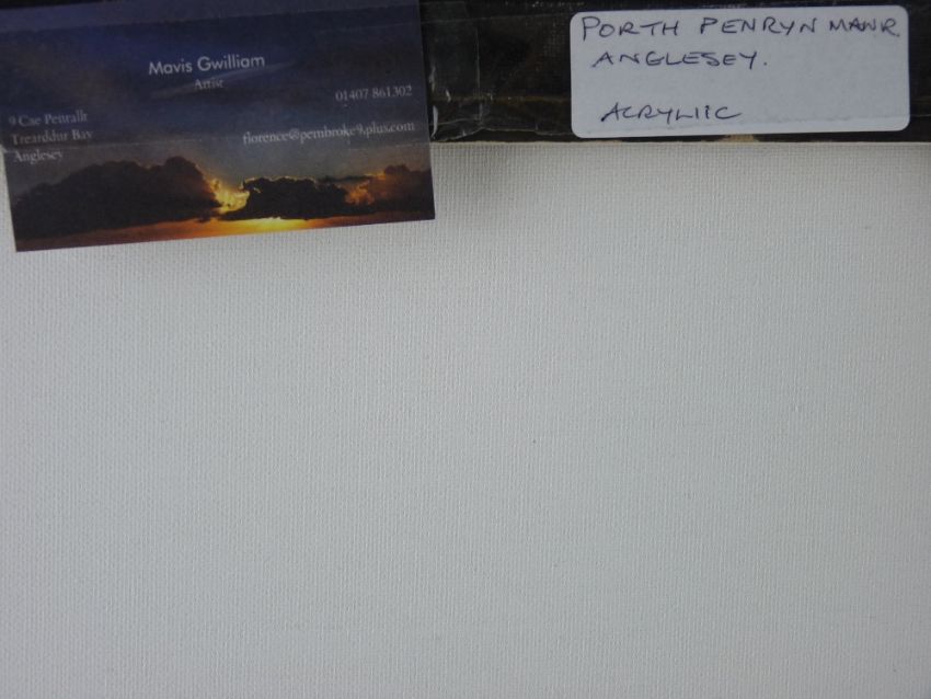 MAVIS GWILLIAM acrylic on canvas - Anglesey rocky coastal scene, Porth Penrhyn Mawr, signed, 45 x 60 cms