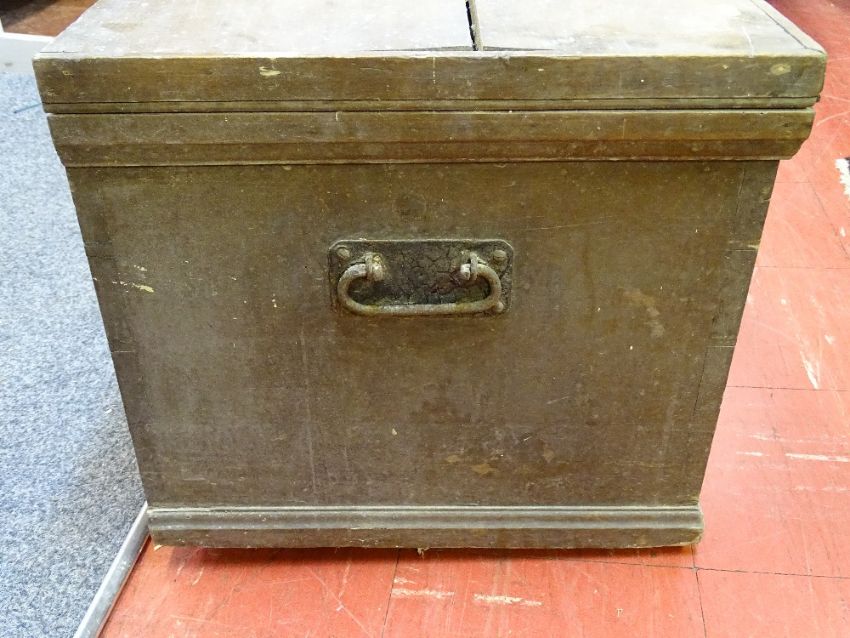 A VICTORIAN PINE LIDDED BLANKET BOX with interior candle box and drawer and iron carry handles, 43 cms high, 98 cms wide, 46 cms deep