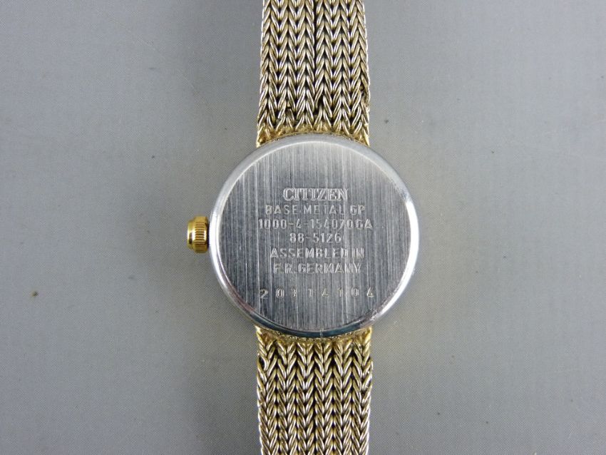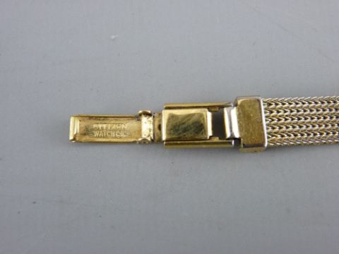 A NINE CARAT GOLD CASED LADY'S WATCH with bracelet strap, the dial marked 'Chalet' along with a gold plated 'Citizen' quartz example