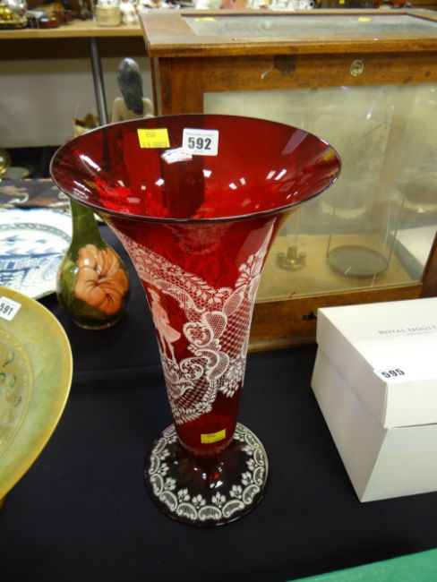 A large Italian lacework glass trumpet vase by Salviati, 15inchs high