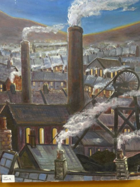 C WILLIAMS oil on canvas (unframed) - South Wales colliery & village scene, signed & dated 2006