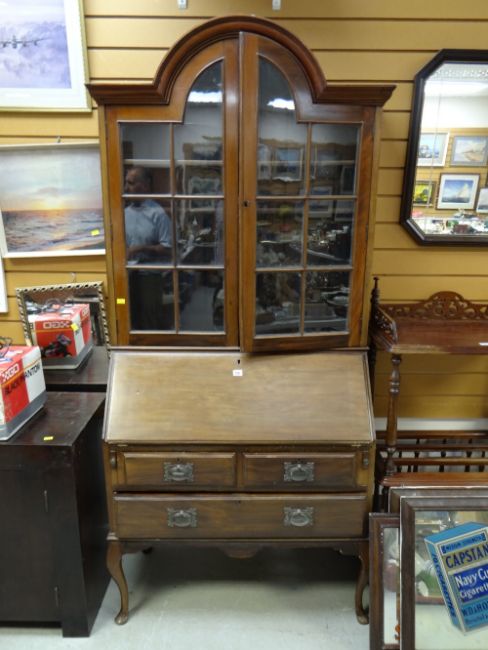 A dome top three-drawer bureau bookcase