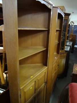 A good pair of joined oak Cotswold-style panelled corner cupboards