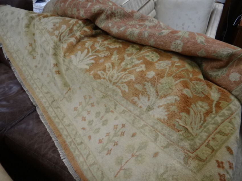 A large pale ground floral patterned rug together with a modern South American patterned rug & another