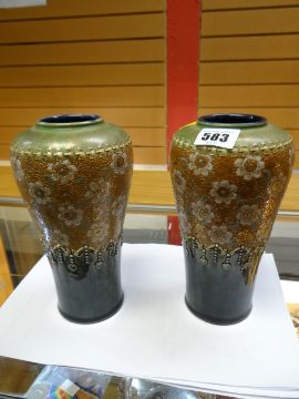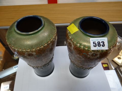 A pair of Doulton Lambeth lace work baluster vases