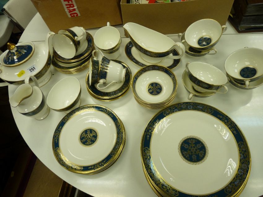 Fine Royal Doulton 'Carlisle' six place tea and dinner set (forty eight pieces) - teapot, sugar basin, cream jug, sauce boat and dish, six dinner plates (plus one spare), six medium plates, six tea plates, six cups (plus one spare), six saucers, six small bowls and six soup bowls