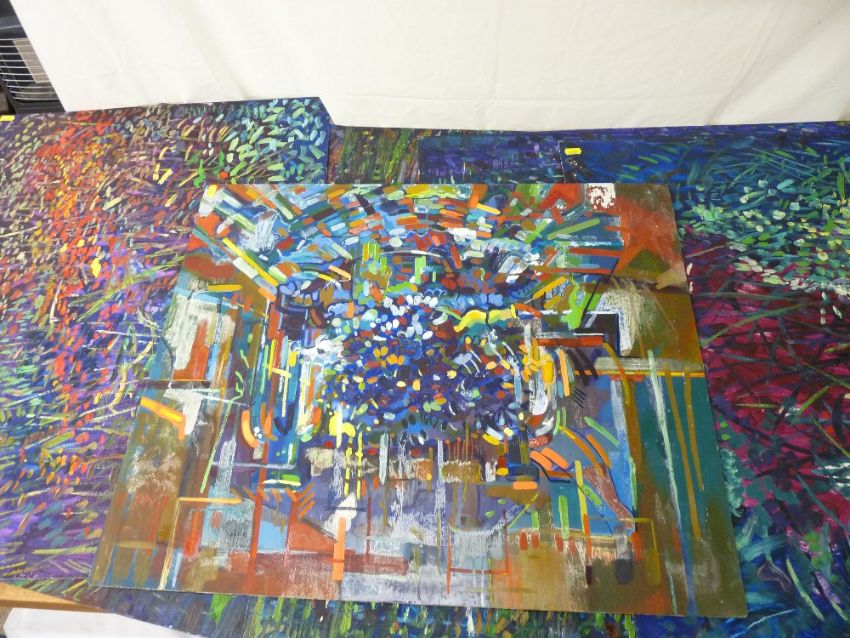 JOHN CHERRINGTON six large oils on board - semi abstract floral scenes