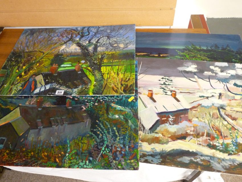 JOHN CHERRINGTON four oils on board - cottage scenes during the seasons