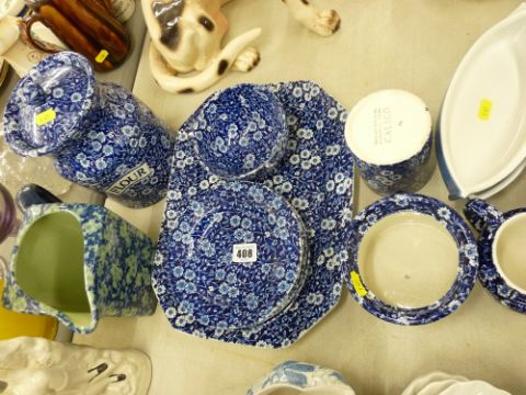 Quantity of blue and white decorated tableware, Calico pattern etc