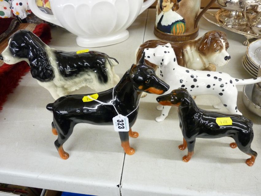 Five pottery standing dogs - one Beswick, one Sylvac, one Coopercraft and two others