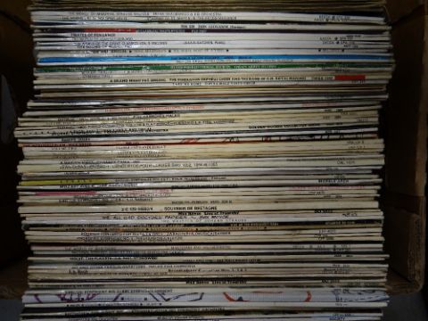 Box of LP records, mainly classical together with spoken word R S Thomas reading his own poems