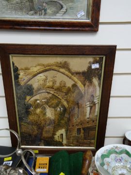 Pair of prints of landscapes together with a print of the Eagle Tower, Caernarfon Castle etc