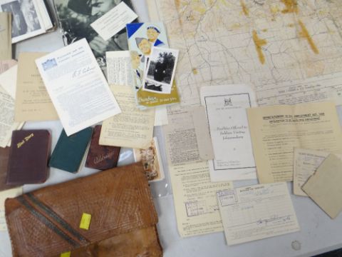 A parcel of mainly WWII ephemera including travel brochures, diaries, letters, map of Kohima & discharge document relating to H J Thompson 1776217