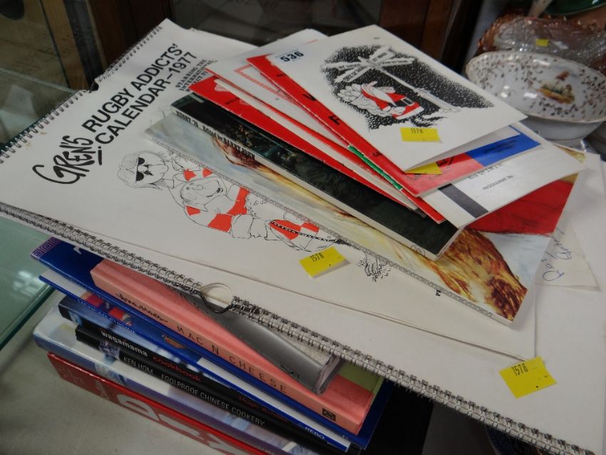 Small parcel of Welsh rugby programmes, Gren cartoons & various cookery books