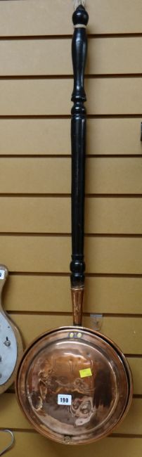 A good antique copper bed warming pan