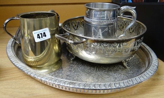 Small parcel of EPNS including a tray, two-handled bowl etc