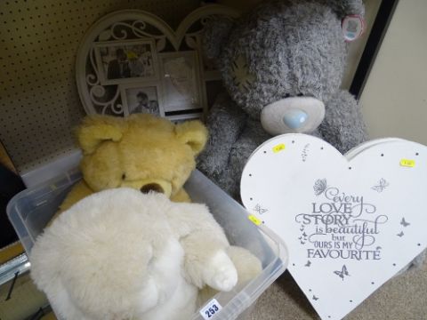 Large 'Tatty Teddy' soft toy and two others along with two heart shaped painted wall decorations