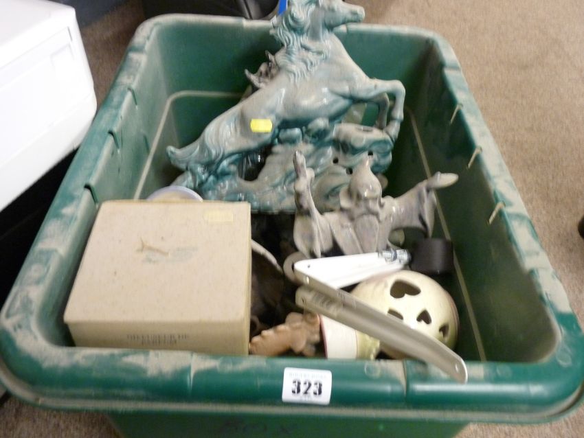 Crate of ornamental china figurines etc