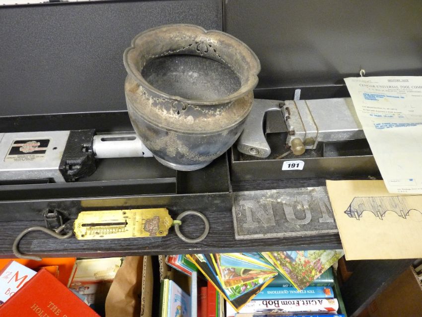 Two cased vintage air reciprocating saws by Cengar, metal plaque, electroplate etc