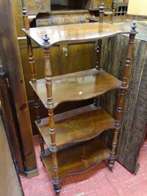 Rosewood effect four drawer serpentine front whatnot (top gallery missing)