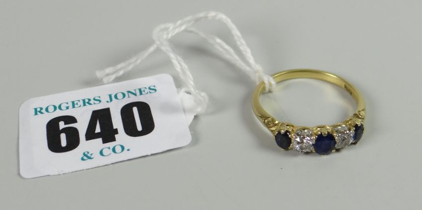 18ct gold sapphire & diamond carved ring (diamonds estimated 0.38cts) 3.5grams