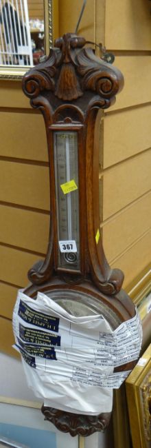 A vintage oak banjo barometer thermometer (distressed)