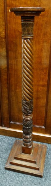 A carved barley-twist torchere