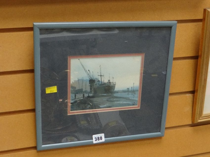 Framed watercolour, ship in Cardiff docks by ALAN TAYLOR
