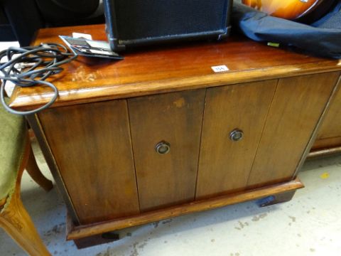 A mahogany sideboard with two cupboards & two drawers together with a small mahogany cupboard on bracket feet