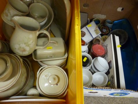 Crate of Denby 'Daybreak' stoneware and a mixed box of other tableware and collectables