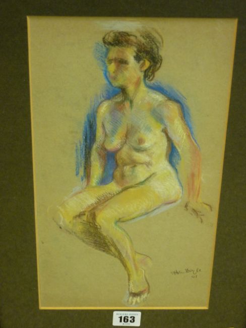 DOYLE pastel - nude sitting female, 35 x 18 cms