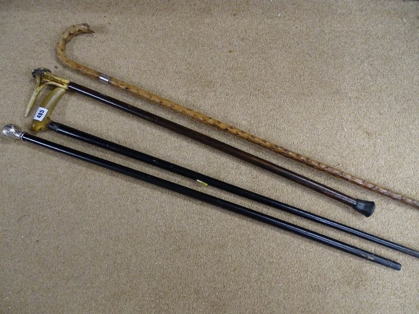 Four vintage walking canes/sticks