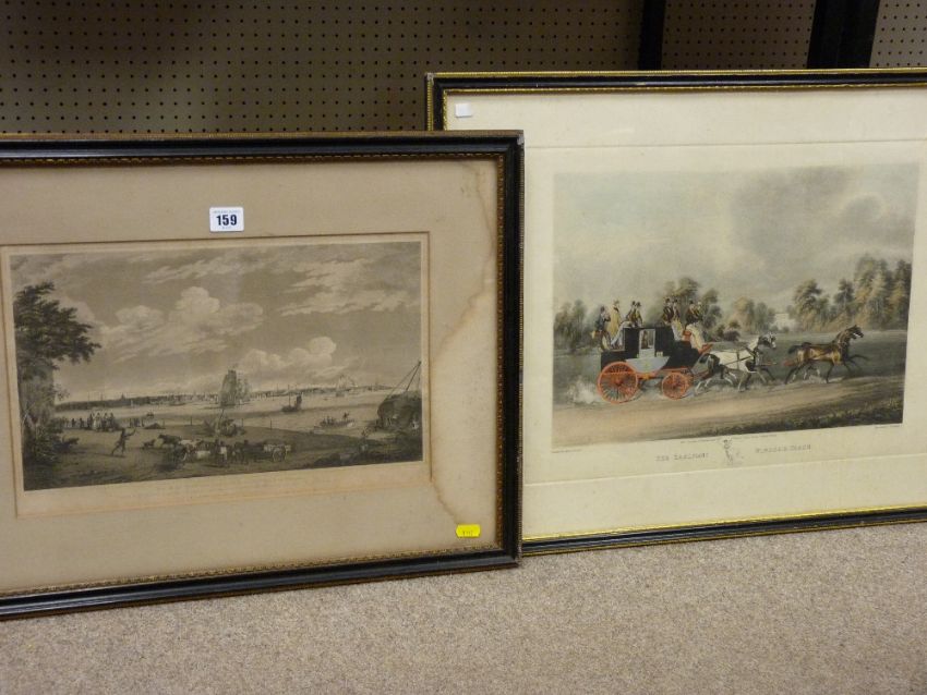 R G REEVE engraving - 'The Taglioni Windsor Coach' and an engraving of Liverpool Harbour