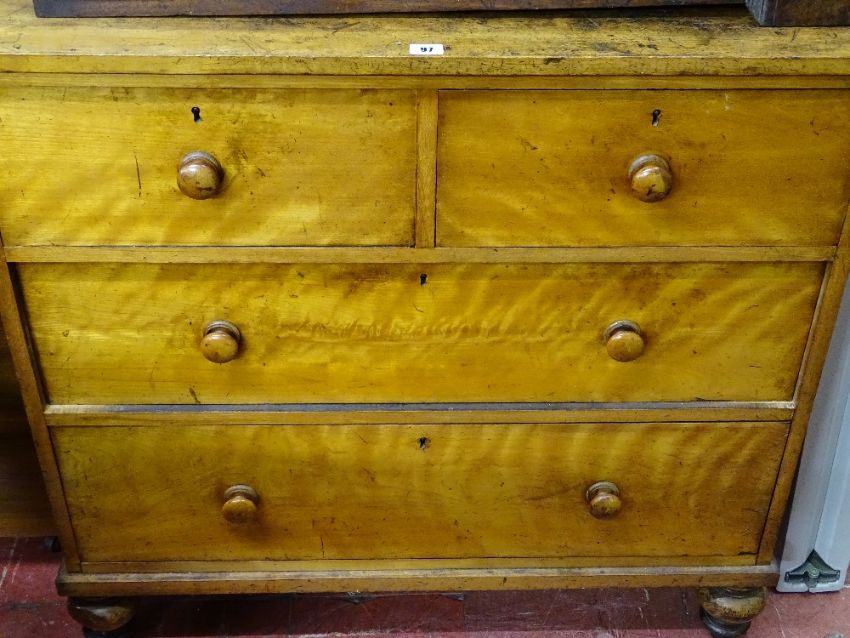 Victorian satin wood chest of two short over two long drawers, stamped 'A Blain, Liverpool', raised on turned bun feet