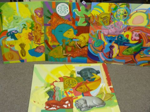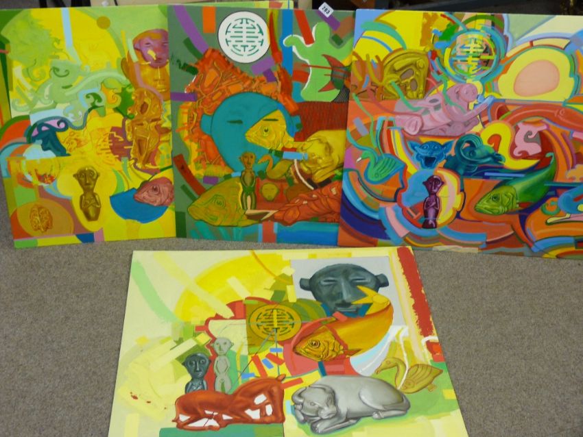JOHN CHERRINGTON oils on board - four colourful psychedelic images