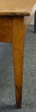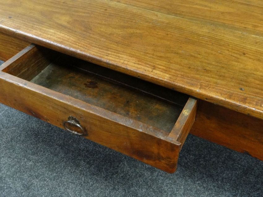 MID-NINETEENTH CENTURY FRUIT WOOD FARMHOUSE TABLE with drawers raised on square tapering legs, 198 x 81 x 76cms