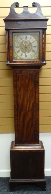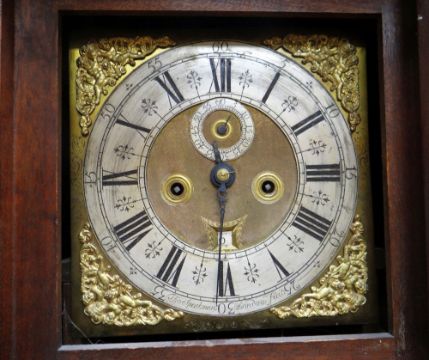 EIGHTEENTH CENTURY MAHOGANY EIGHT-DAY LONG CASE CLOCK the brass face having silvered Roman numerals chapter ring Mark Thomas Speakman, Londini Fecite, having two weights, pendulum & winder
