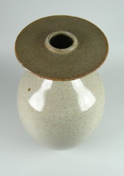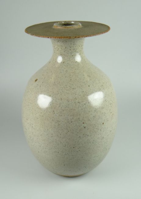 DAVID LLOYD JONES STUDIO POTTERY VASE of ovoid form and with disk neck, mottled grey glaze, potter's mark, 22cms high
