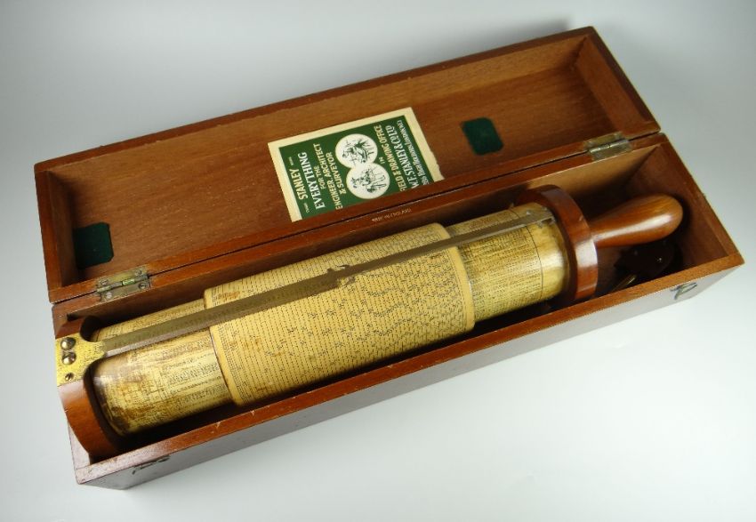 STANLEY FULLER CALCULATOR having mahogany handle & top in original fitted mahogany case with mounting bracket with serial number 7551-41, marked 'Made in England', the box having original Stanley & Co label to interior
