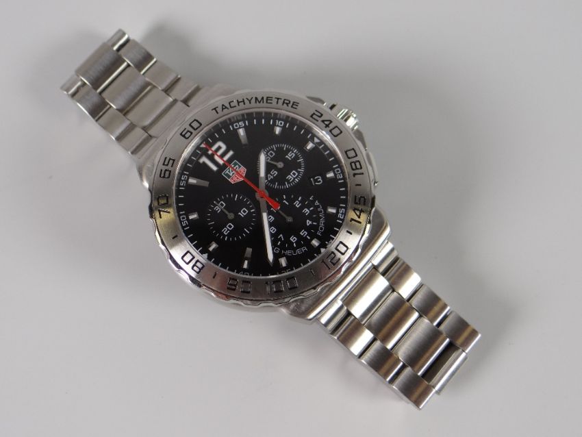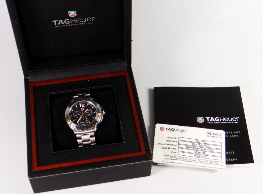 TAG HEUER FORMULA ONE STAINLESS STEEL CHRONOGRAPH WRIST WATCH number CAU112 EPW1289 with service guarantee until April 2019 from Tag Heuer, boxed with papers, spare links & travelling case