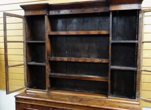 Condition: stains & marks to surfaces, some dings & dents to edges, some of hooks - possibly not original, splits to wood in dog kennel area, otherwise appears okay.