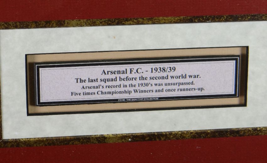 FRAMED ARSENAL FOOTBALL CLUB 1938-39 SQUAD PHOTOGRAPH together with fourteen signatures to include Cliff Bastin, Les Jones, Wilf Copping, Eddie Hapgood, Norman Sidey, Dave Nelson, George Male etc, framed & glazed,