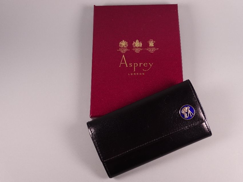 AN ASPREY KEYHOLDER, an unused boxed gentleman's leather six ring keyholder with zip back by Asprey