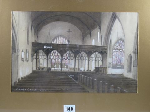 WARREN WILLIAMS ARCA watercolour - interior church scene, entitled 'St Mary's Church, Conwy', signed and indistinctly dated, 22 x 34 cms