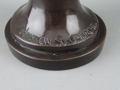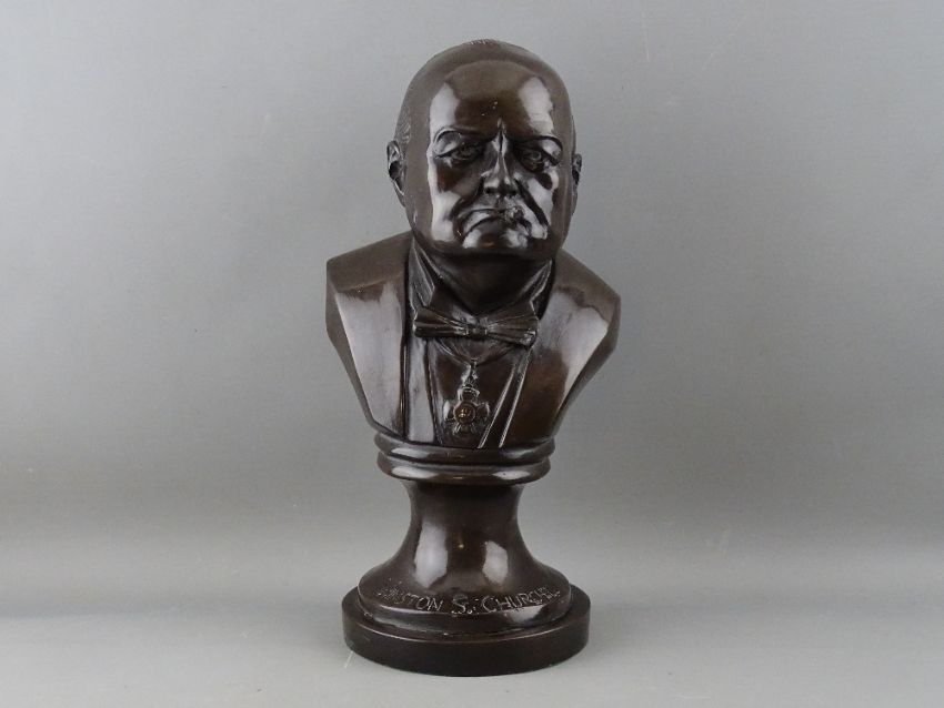 A BRONZED COMPOSITION BUST OF WINSTON S CHURCHILL, 33 cms high