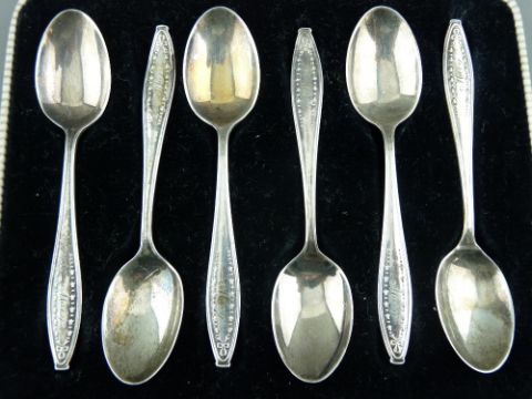 TWO CASED SETS OF SILVER TEASPOONS including a set of twelve, Chester 1904 and six marked Sheffield 1936, 6.3 troy ozs gross